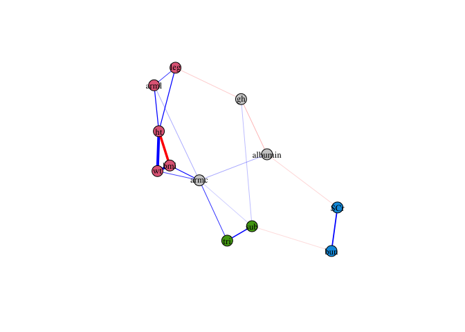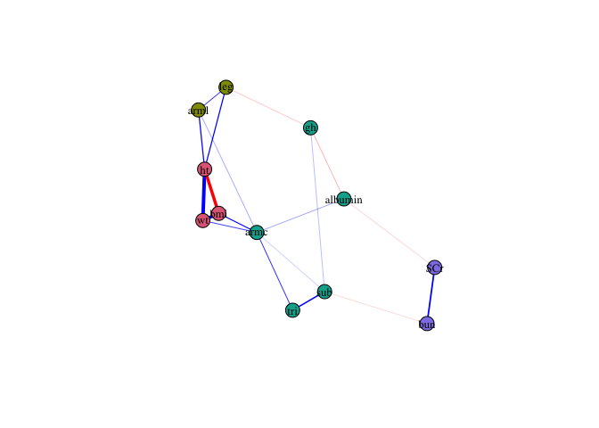Here, covariates (age, sex, re) are included in the estimation to adjust the network, but they are excluded from the visualization and centrality metrics.