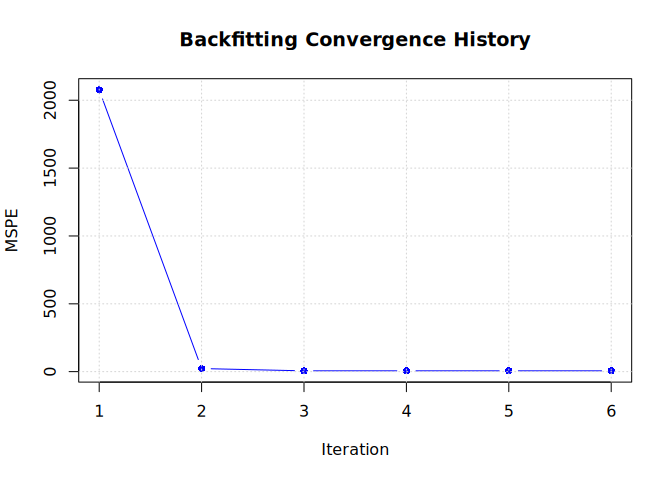 #> Final MSPE: 5.999642You can also inspect the convergence of the backfitting algorithm by plotting the Mean Squared Prediction Error (MSPE) over iterations.