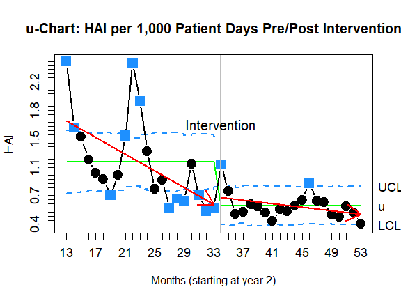 u-chart for infection rates with an intervention.