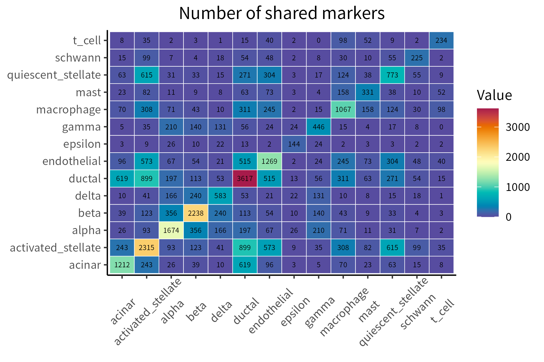 This function plots a numeric matrix. Here, we used shared cluster markers as an example: