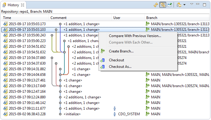 The versioning mode determines whether the history of changed models is preserved (for example to be used in Online Historical Checkouts and with the CDO Time Machine View) and whether branches are supported. The versioning mode of the repository can not be changed anymore, once the repository is created.