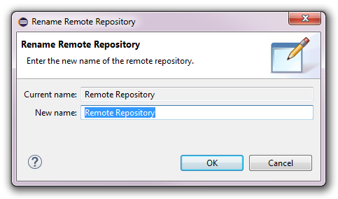 CDO supports renaming an existing repository connection, i.e., changing its label, at any time, even when checkouts from that repository already exist. A repository connection can be renamed by selecting it and pressing the F2 key or selecting the Rename action in the context menu. The following dialog will pop up: